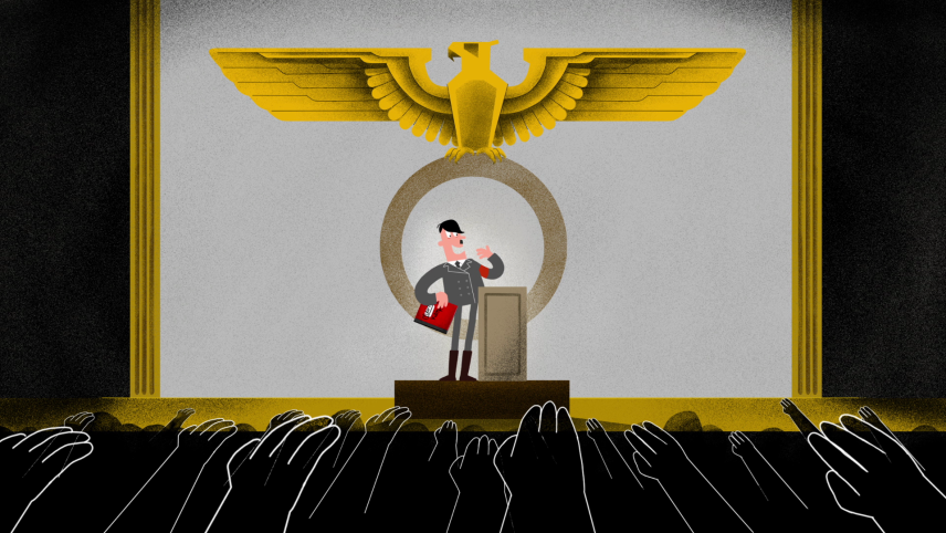 Scrollverhaal over de opkomst van Adolf Hitler
