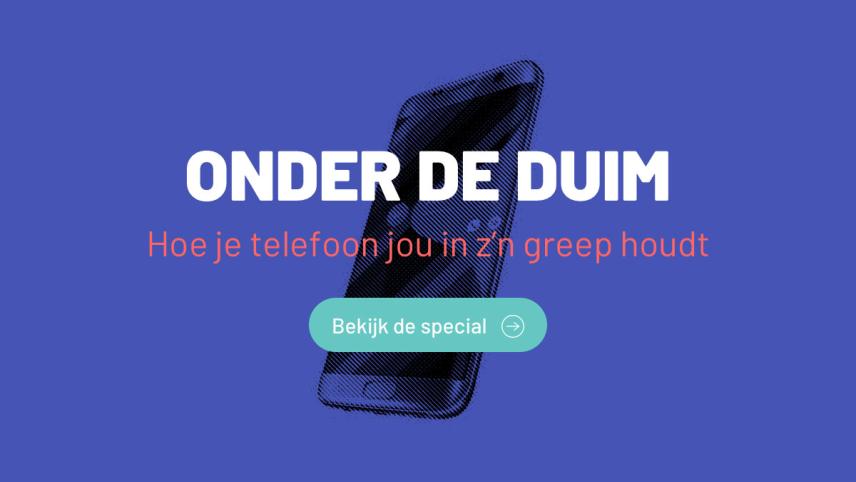 1.5kOnder de duimScrollverhaal over telefoonverslavingWord jij ook zo snel afgeleid door je smartphone? Het kan best moeilijk zijn om alle berichtjes, likes en notificaties te negeren. Deze special van de NOS laat zien hoe je telefoon jou in zijn greep houdt en wat je ertegen kunt doen. NOS op 3FavorietToevoegen